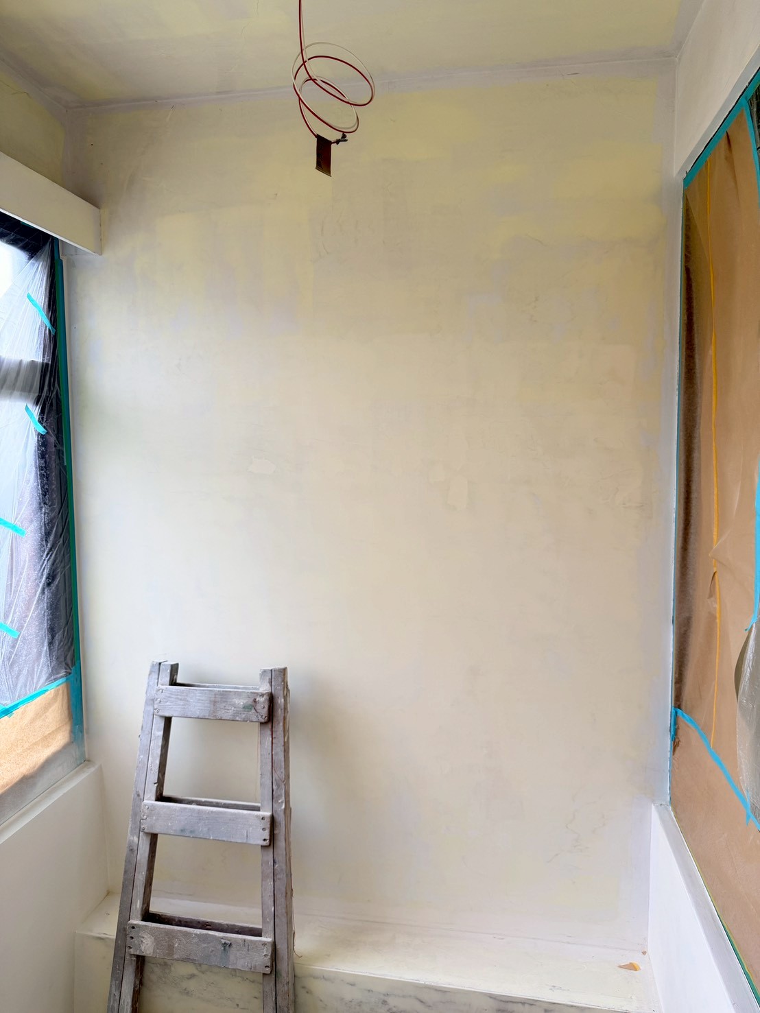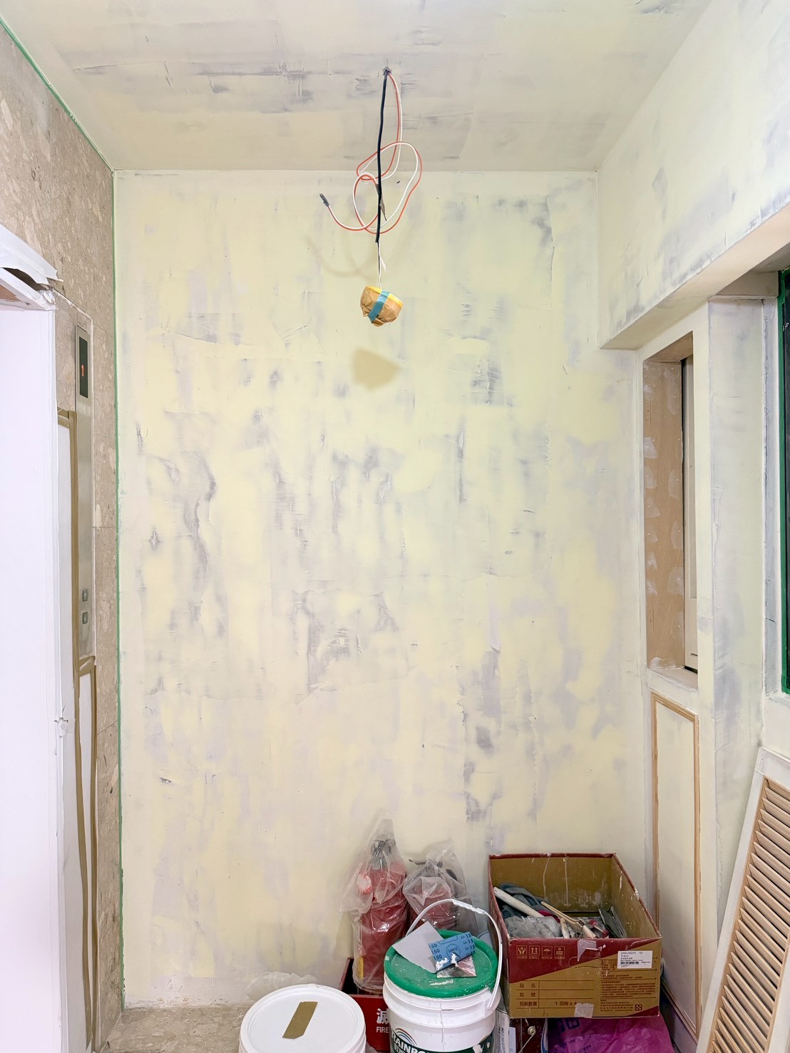 #牆面、天花坑洞、裂縫批土、上AB膠處理 #前後陽台牆壁、天花板油漆粉刷