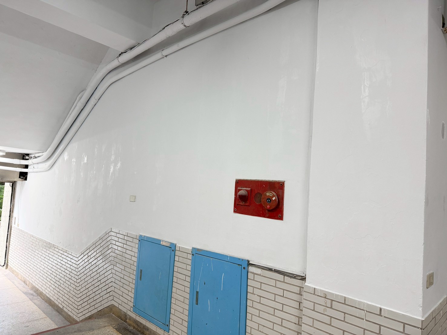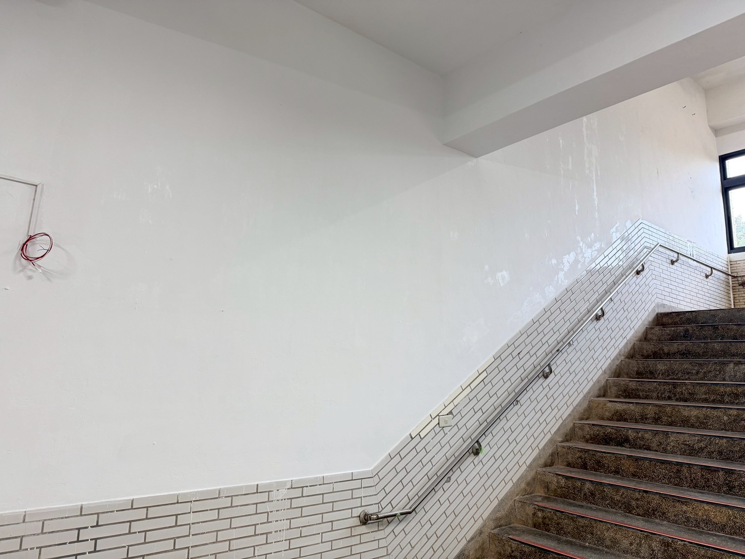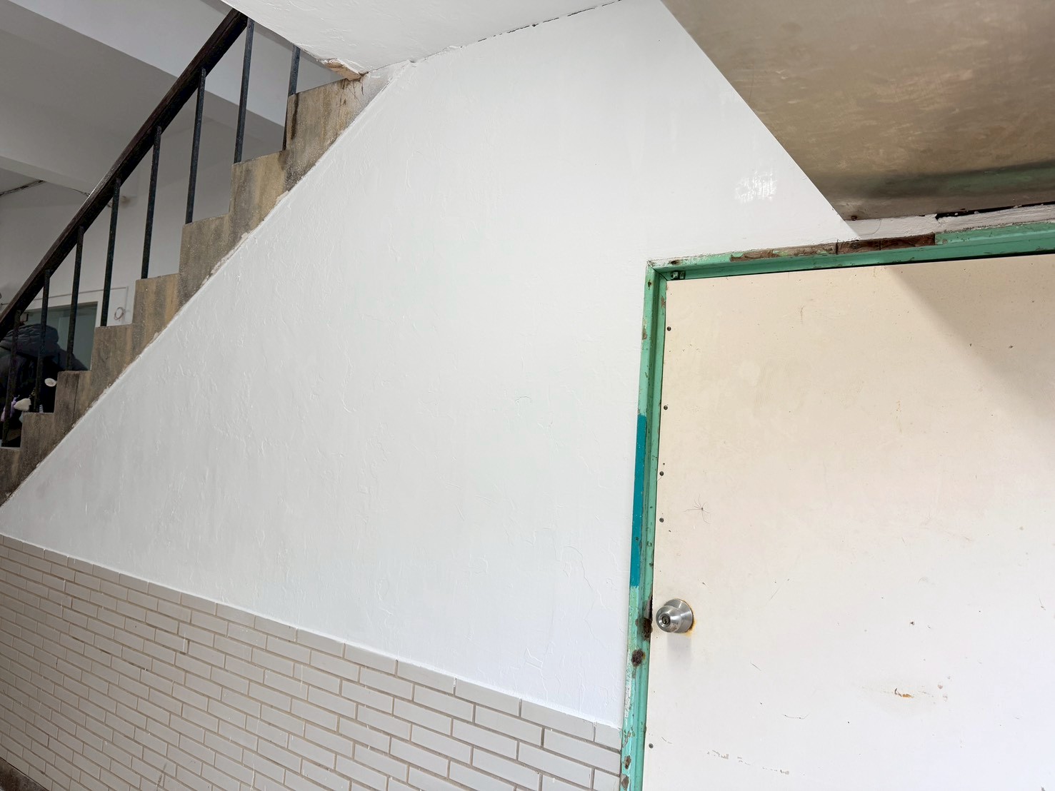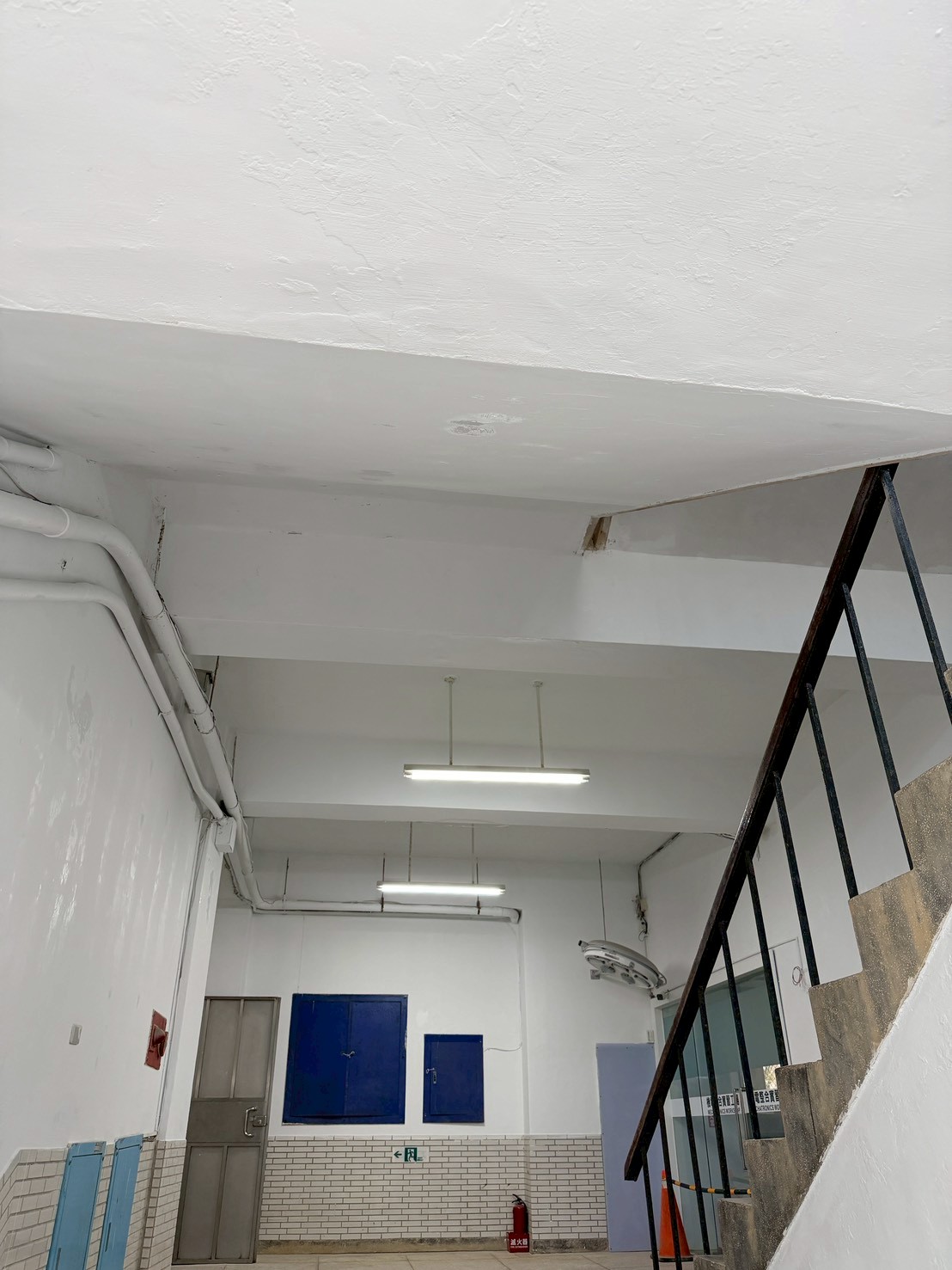樓梯牆壁跟天花板很多都是嚴重油漆剝落,牆面清潔重新補水泥批土,粉刷乾淨。