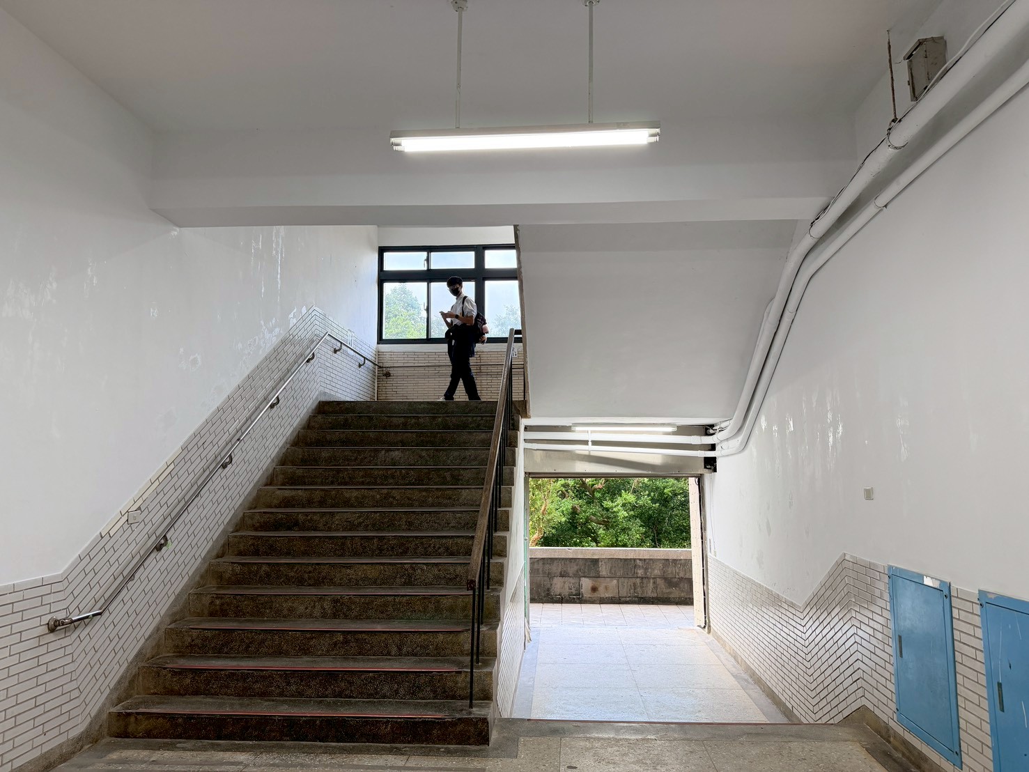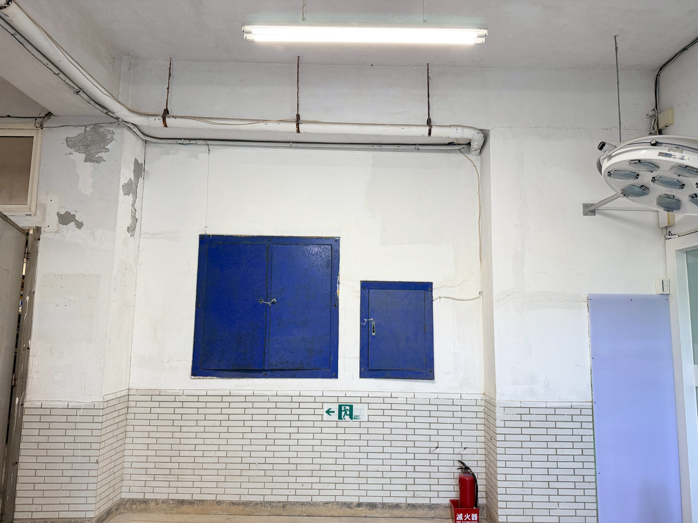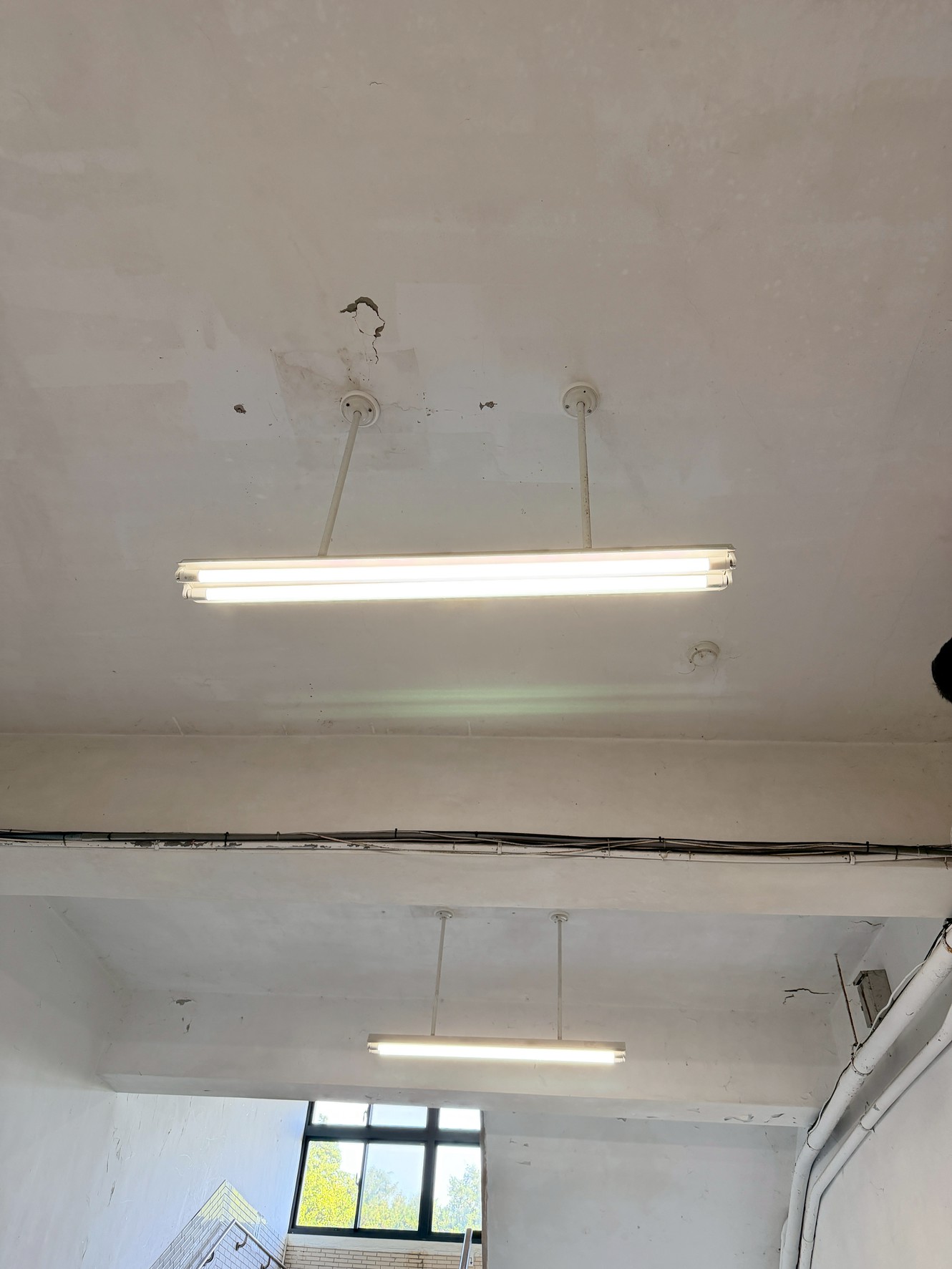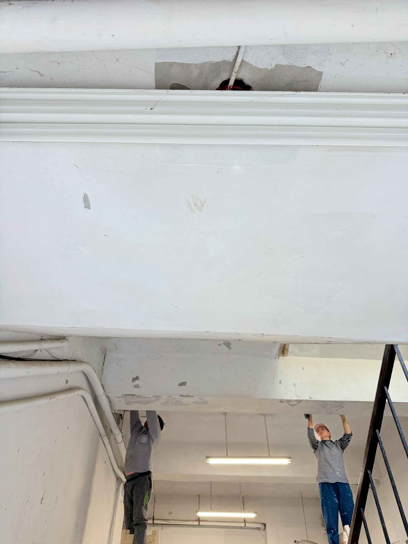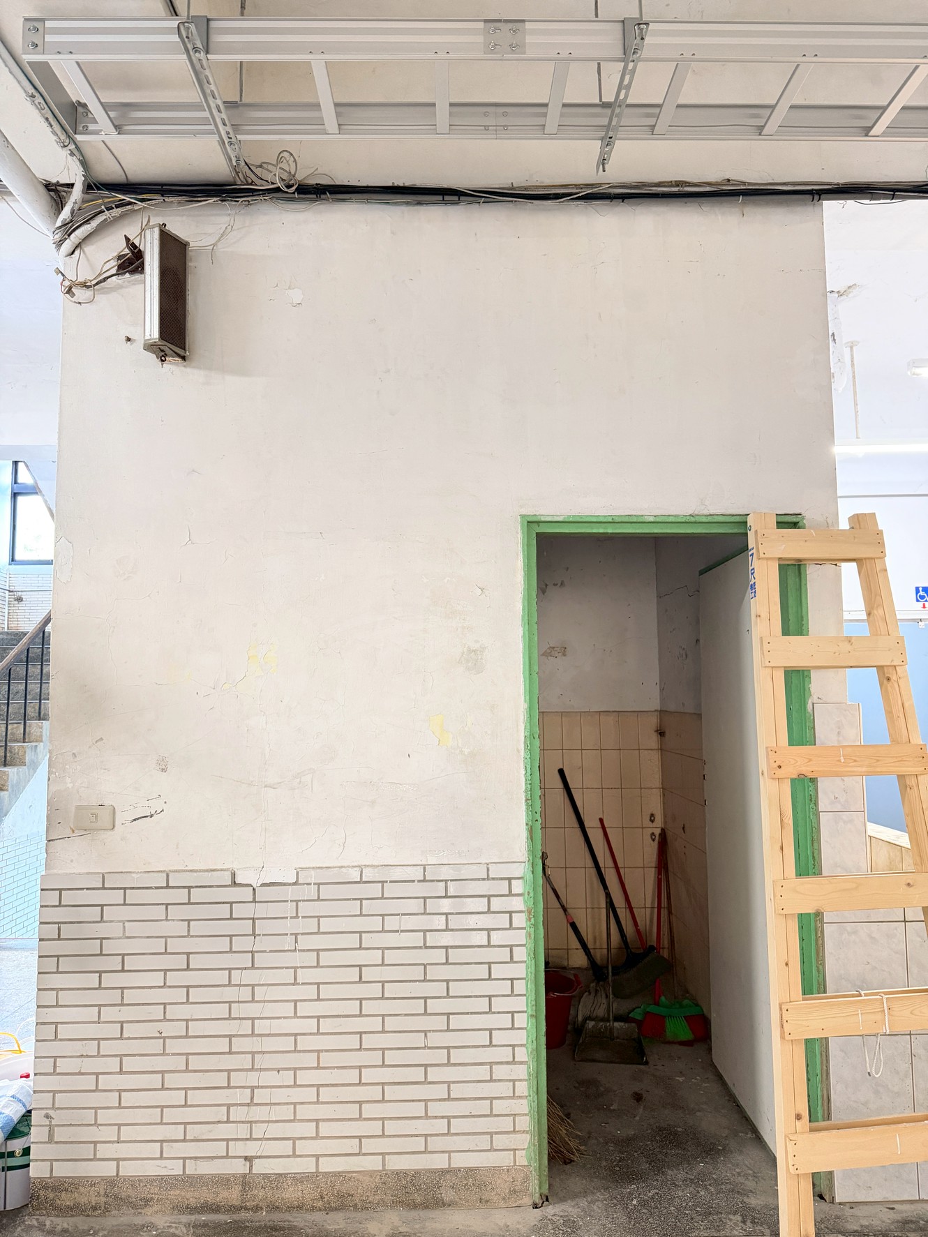樓梯牆壁跟天花板很多都是嚴重油漆剝落,牆面清潔重新補水泥批土,粉刷乾淨。