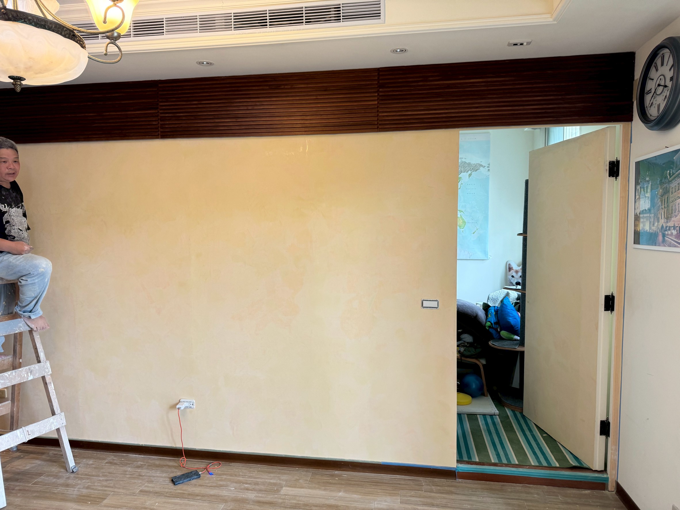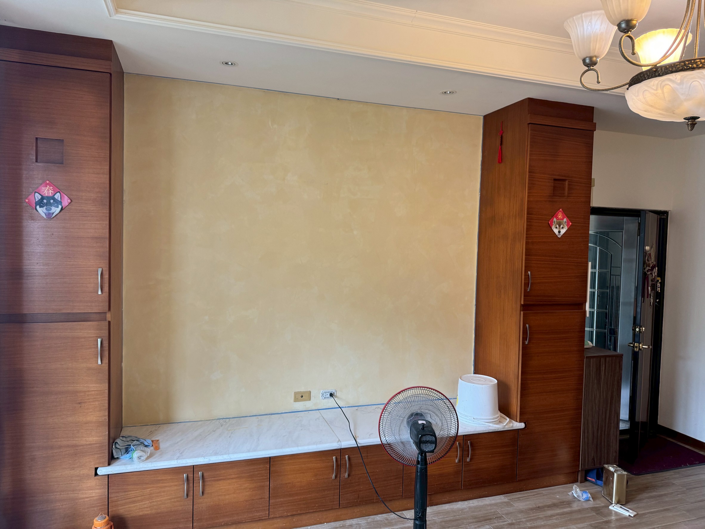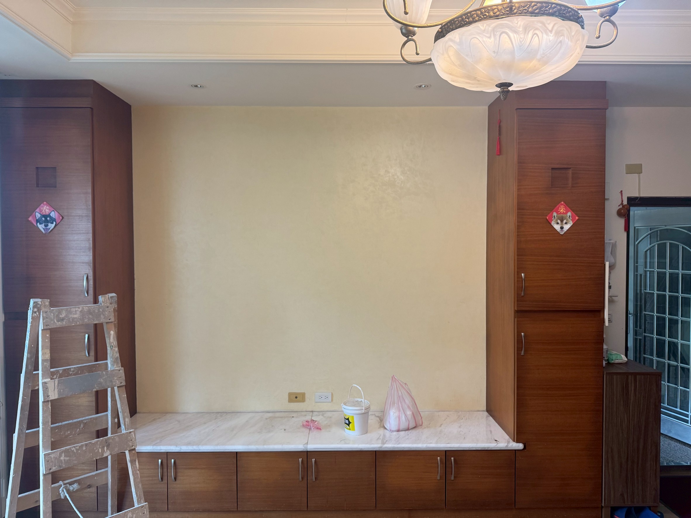 很特別的油漆粉刷乾淨,屋主要求某些牆壁做馬來漆,其他的牆壁跟天花板都是一般的油漆粉刷乾淨。