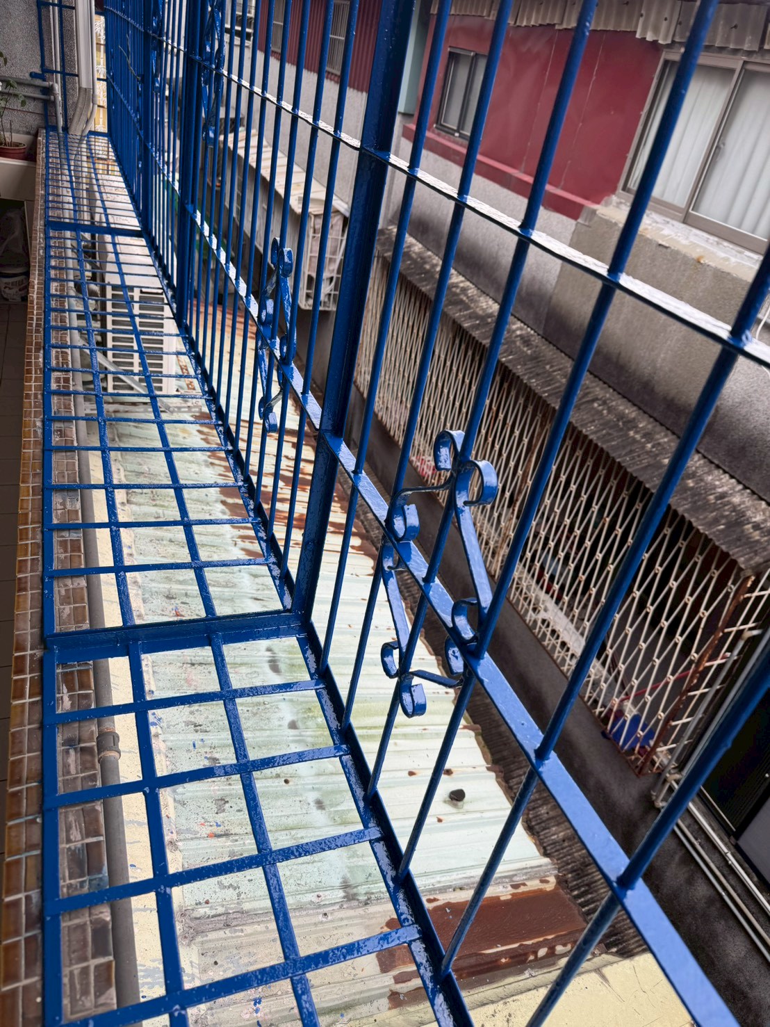 陽台鐵窗生鏽,油漆剝落,重新上漆粉刷乾淨